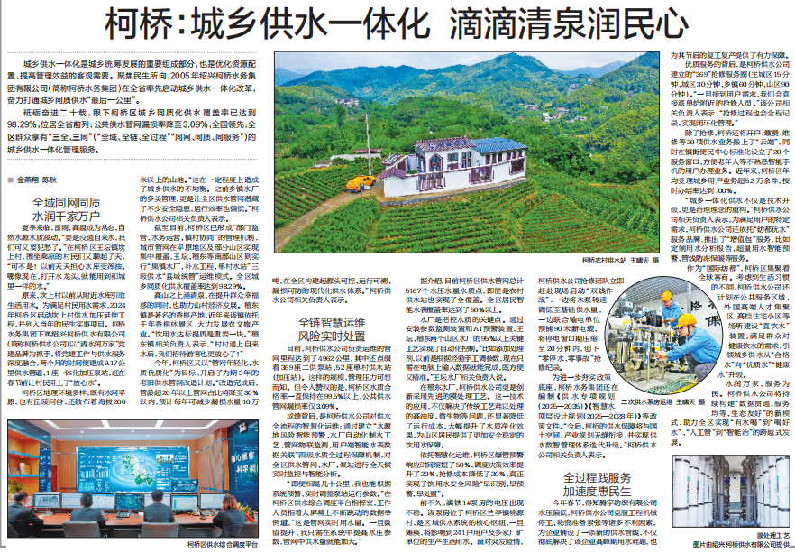6月26日,《浙江日報(bào)》專版刊登《柯橋:城鄉(xiāng)供水一體化 滴滴清泉潤民心》,全面深入報(bào)道了柯橋城鄉(xiāng)供水一體化的創(chuàng)新探索與實(shí)踐成效。