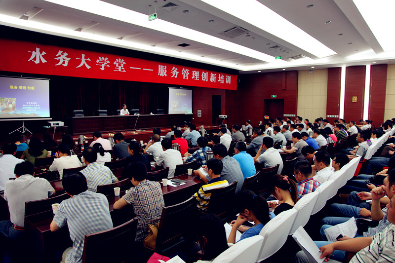 6月15日,集團(tuán)公司第五期“水務(wù)大學(xué)堂”在縣委黨校一樓報(bào)告廳舉行。浙江大學(xué)人文學(xué)院院長(zhǎng)、博士生導(dǎo)師、浙江大學(xué)語(yǔ)言與認(rèn)知研究中心主任黃華新教授應(yīng)邀講授一期“服務(wù)管理創(chuàng)新”課程。集團(tuán)系統(tǒng)內(nèi)160余名中層副職以上領(lǐng)導(dǎo)干部參加。