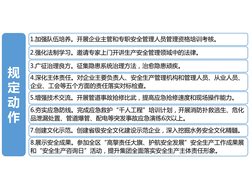 本屆安全生產(chǎn)文化月以宣傳貫徹中共中央國務(wù)院《關(guān)于推進(jìn)安全生產(chǎn)領(lǐng)域改革發(fā)展的意見》為主線,以“全面落實(shí)企業(yè)安全生產(chǎn)主體責(zé)任”為主題,以創(chuàng)建省級(jí)安全文化建設(shè)示范企業(yè)為契機(jī),立足集團(tuán)公司“四全、四化”安全體系建設(shè)中心,通過開展八項(xiàng)“規(guī)定動(dòng)作”和七項(xiàng)“特色活動(dòng)”,強(qiáng)化安全“紅線”意識(shí),弘揚(yáng)水務(wù)安全文化,為促進(jìn)集團(tuán)可持續(xù)安全健康發(fā)展提供有力的思想保證、文化條件和輿論支持。