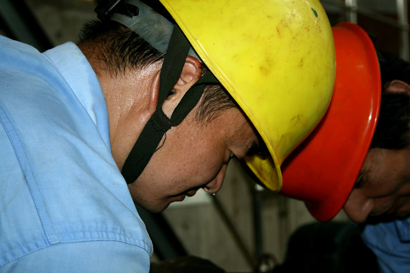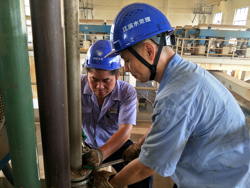 紹興水處理公司維修人員為了搶修設備,汗流浹背。