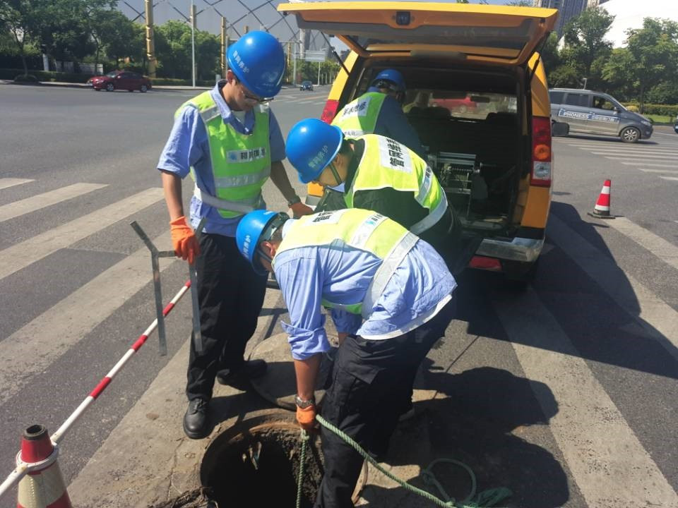 為了保證雷暴天氣不對路面造成影響,排水公司養護班同志們對管道一一檢測。