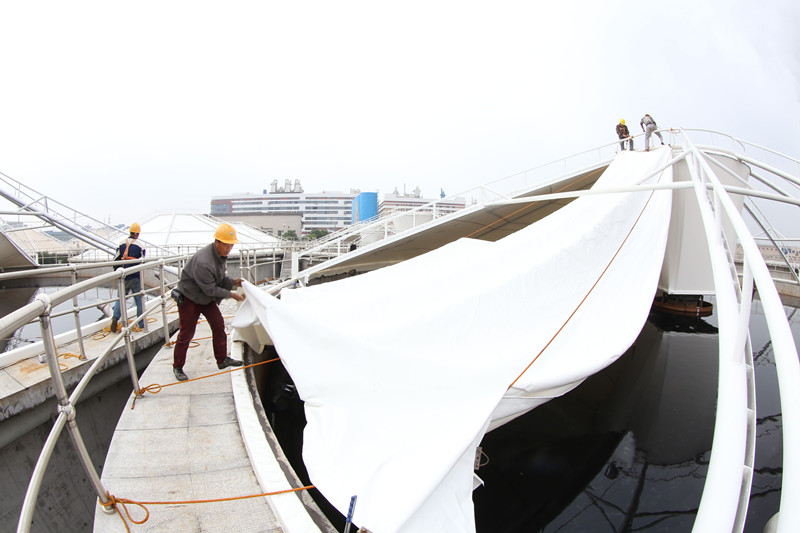 日前,江濱水處理公司20萬噸/日集中預處理二期工程污泥濃縮池進入鋼結構膜安裝階段,預計于本月底基本完成。該除臭系統(tǒng)由8個鋼結構反吊膜裝置及2個生物除臭裝置組成,為公司第四批建設的除臭項目。至此,公司在臭氣治理上已累計投入2000余萬元,目前廠區(qū)內高、中濃度臭氣基本實現全收集、全治理,為實現“生態(tài)江濱”目標打下了堅實基礎。