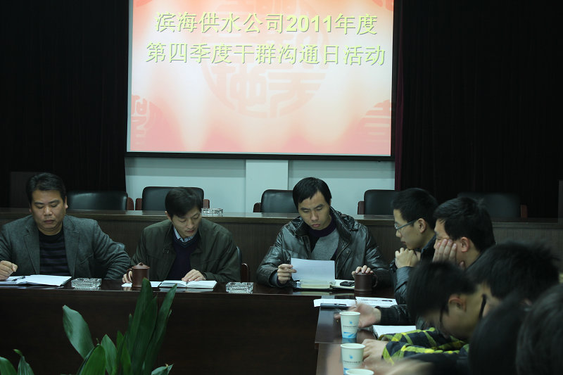 參加本次“干群溝通日”活動的對象是部分2010年聘用職工及今年新進職工。座談會上,2010屆職工代表以“過來人”的經歷向新進職工介紹了一年來的工作感受,新職工逐一發言暢談了進公司以來的所感所想,并與公司領導進行了面對面的交流,會議在輕松、熱烈的氣氛中進行。最后,公司董事長吳紹文向新職工提出希望,希望新職工盡快融入工作角色,扎根于濱海供水公司這片沃土,立足崗位成才