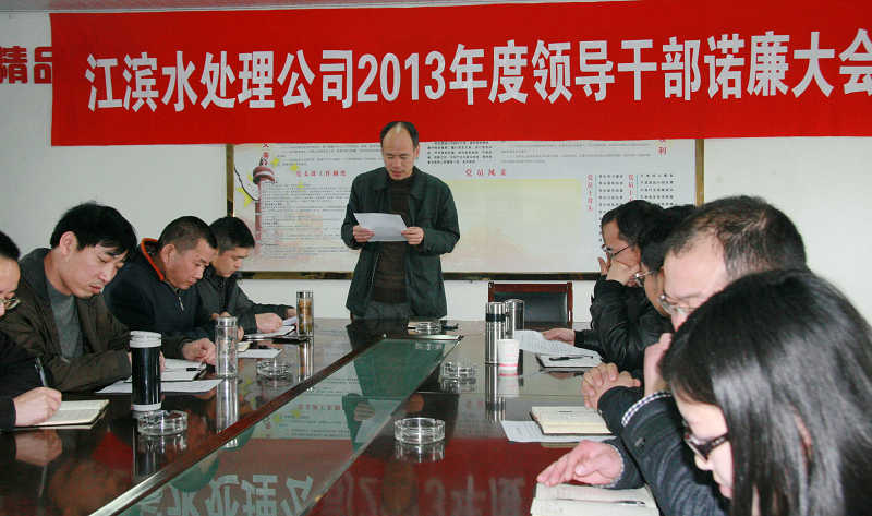 3月26日下午,江濱水處理公司2012年度領(lǐng)導(dǎo)干部諾廉大會在二樓會議室舉行,黨支部書記傅小春主持會議,公司中層正職以上干部共計(jì)9人結(jié)合自身工作崗位,就如何加強(qiáng)廉潔自律意識、做好廉政風(fēng)險(xiǎn)防控做出承諾,接受職工監(jiān)督。