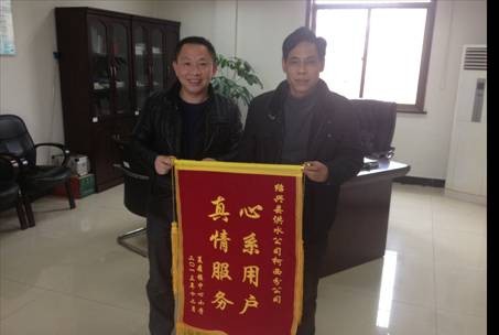 2014115,夏履鎮中心小學負責人特意來到供水公司柯西分公司,送上一面“心系用戶,真情服務”的錦旗,向分公司幫助學校查漏修漏服務表示感謝。