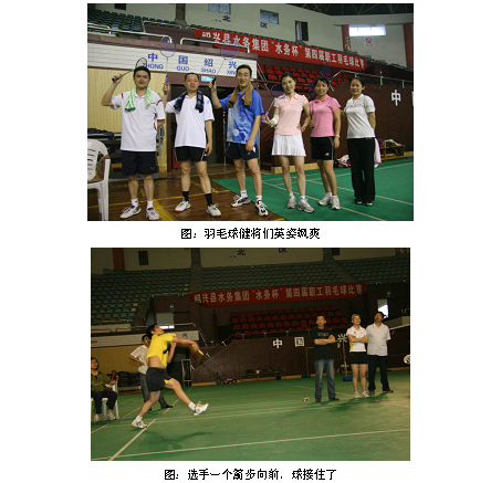 為宣揚企業文化,提倡“快樂工作、健康工作”,增進青年職工的團隊協作意識,增進同事之間的默契度,拉近跨部門業務的操作距離,2010年5月22日,水務集團團委在紹興市城東體育館舉辦了第四屆“水務杯”羽毛球比賽。
