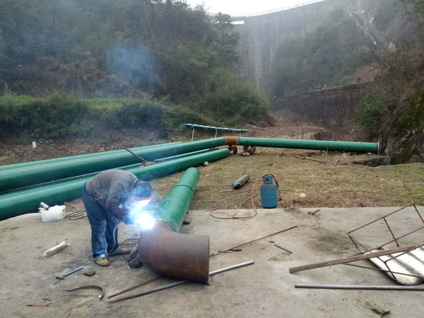為保證鵝塢水庫汛期正常泄洪,避免泄洪時水廠無法正常制水現(xiàn)象,經(jīng)公司領(lǐng)導(dǎo)與平水鎮(zhèn)水利站人員多次踏看,結(jié)合鎮(zhèn)政府要求,柯橋供水公司決定出資60萬元,安裝一條總長120米、口徑為DN400的虹吸管。該工程自12月進(jìn)場后,目前已完成搭跳、碎石子清理等前期準(zhǔn)備和虹吸裝置的基礎(chǔ)澆筑工作,預(yù)計在春節(jié)前完工。該工程的建成將徹底消除稽東水廠的水源斷供隱患,提高了安全供水保障。